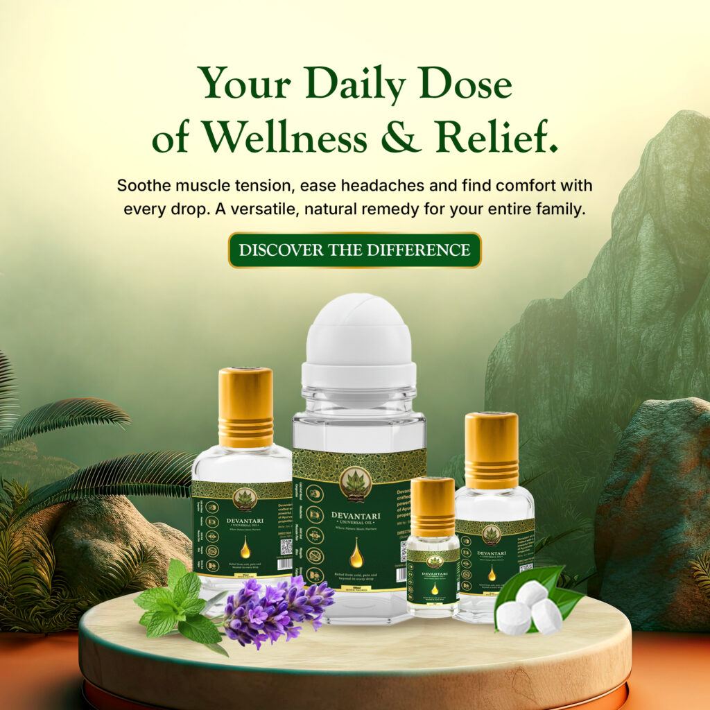 Devantari Oil is formulated to provide quick relief from muscle pain, joint stiffness, backache, and fatigue. It's also beneficial for improving flexibility and relaxation.